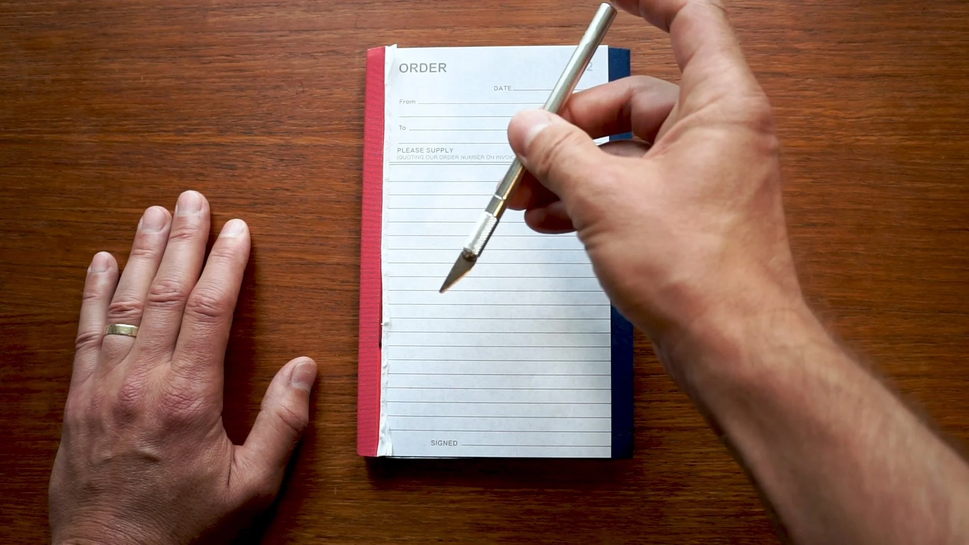 As a kind of act of refusal, the (blunted) scalpel rubs and scratches the order-book but without making new marks. Refusing to add content – no marks, no letters, no writing – audiences listen and watch the artist trace over top lines found already on each page. Without work, waiting for work: what else to do but listen to the voice and melodies. Re-tracing nothing: nothing but orders that, as the pages appear, remain empty of content.